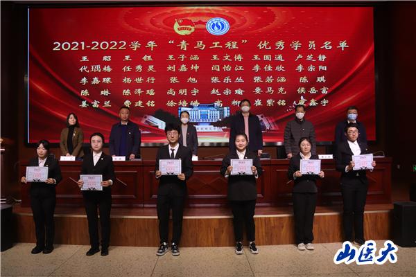 与会领导为“青马工程”结业班优秀学员颁发荣誉证书,为新一期“青马工程”指导教师颁发聘书。