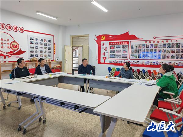 彭月兰与学生工作部张晶部长和各副部长就“一站式”学生社区管理模式改革试点建设、学生的思想政治教育、资助工作、心理健康教育工作、网络思政教育工作、少数民族学生管理工作如何推进、存在的问题及解决路径进行了探讨。
