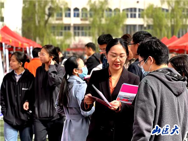 为深入贯彻落实党中央、国务院“稳就业、促就业”的政策要求,全力为毕业生提供优质求职平台,4月11日,我校2023届毕业生校园招聘会在迎泽校区操场隆重举行。来自全国22个省、自治区、直辖市的314家用人单位参会,提供13000余个就业岗位,其中医疗卫生单位232家,占比74%,我校2023届4000余名毕业生参会应聘。本次大型招聘会的单位数、岗位数均创历史新高,这是我校第20次为毕业生举办大规模、高层次、多岗位的供需见面活动。