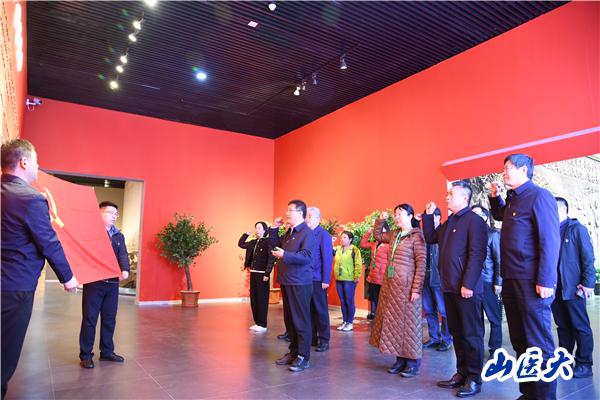 展览馆大厅,面对鲜红的党旗,读书班成员列队肃立,举起右拳,在校党委书记、学校主题教育领导小组组长王军的领誓下,重温入党誓词“我志愿加入中国共产党,拥护党的纲领,遵守党的章程……”。短短十二句入党誓词,字字千钧,既概括了我们党对党员的基本要求,也概括了党员对党组织和党的事业应承担的政治责任。