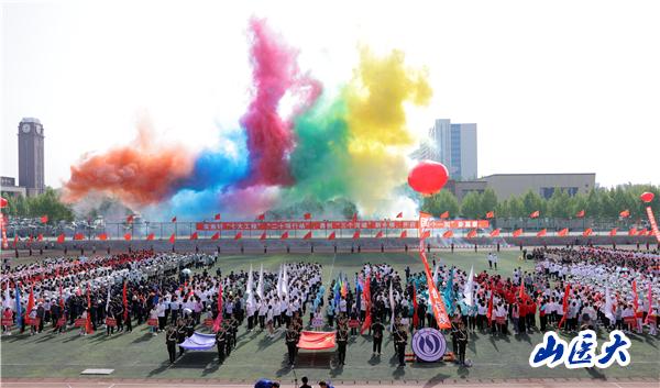 解军在开幕辞中指出,体育一直是德智体美劳“五育并举”的重要内容,是落实立德树人根本任务的重要途径。长期以来,学校以培养卓越医师为目标,不断提高体育教育水平,在体育课程改革、校园体育文化、学生体质健康、竞技体育等方面多点布局、全面开花。近年来,学校高度重视体育教育投入,大力支持开展全覆盖、高质量的体育活动,全面推行各项举措以提高学生健康水平,学生体质状况逐年提升。近三年,学校足球、篮球、排球、健美操等代表队,多次代表学校参加国家级及省级比赛并取得了骄人的成绩。这些成绩的取得,激励着更多的师生医护员工更加热爱体育,强身健体。六十重开新甲子,既是漫长的时间跨度,更是一个重要的里程碑时刻。本届运动会恰逢六十甲子,是有史以来规模最大、比赛场次最多、参赛单位最全的一次运动会,是所有山医人团结相聚的一次盛会。希望全体运动员、全体裁判员会坚持“友谊第一,比赛第二”的原则,以更快、更高、更强的体育精神投身比赛,赛出友谊、赛出公平、赛出水平。本届运动会一定能够办成精彩、团结、奋进的盛会,为早日建成全国一流研究应用型医科大学贡献青春力量和体育力量!
