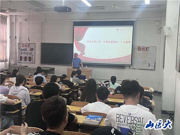 赵文军所做题为《学习党的二十大精神 牢记领袖殷殷嘱托 推动学校事业高质量发展》的党课。党课内容围绕学习贯彻党的二十大精神这条主线,结合习近平总书记历次考察调研山西重要讲话重要指示精神,从“夯实信仰之基,学深悟透党的二十大精神”、“扛牢重大使命,扎实推进中国式现代化的山西实践”、“牢记领袖嘱托,为推进中华民族伟大复兴贡献山医力量”三个方面与学院师生进行面对面交流,启迪师生如何学有所悟、学有所得,如何更好的开展工作和成长成才。