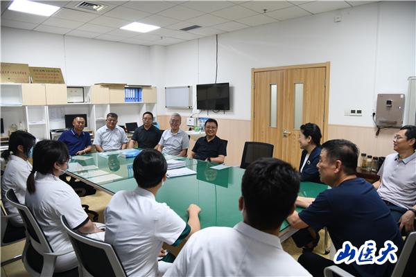 在介休市委书记任光耀、副市长韩瑜及医院工作人员等陪同下,王军一行首先看望了在介休市人民医院相关科室值夜班的我校临床实习学生,并与值班医生等进行了充分的沟通交流。王军对介休市人民医院为学校临床教育教学工作做出的贡献表示衷心感谢,对校、院双方多年来的友好协作、共同育人工作给予充分肯定,对在院实习的学生表示诚挚问候。他指出,临床教学是培养医学生临床实践能力,保证人才培养质量的重要阶段,临床教学医院是学生走向医学岗位的第一站,医院的带教老师是学生今后医学岗位的终身教师和人生导师。要加强医德医风教育,加强学校与医院的紧密联系,重视学生党建工作。要加强教学基地建设,努力提高学校临床教学基地的教育教学水平,切实把临床教学管理工作做好、做实,让学生满意,让家长放心。王军勉励同学们要珍惜临床实习机会,服从医院管理规定,严格要求自己,多向指导老师学习,敞开心扉与老师交流,努力提高临床技能水平。同学们纷纷表示,在实习岗位上跟着带教老师学习的收获很大,在今后的实习工作中,将更加勤于学习、踏实肯干,以优异的成绩回报母校、回馈社会。