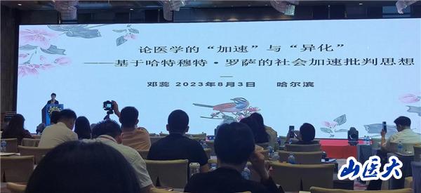 我校人文社会科学学院邓蕊教授受邀出席论坛并作题为《论医学的“加速”与“异化”——基于哈特穆特·罗萨的社会加速批判思想》专题报告。邓蕊首先对罗萨的社会加速批判思想进行理论框架分析,指出“加速”导致“异化”是医学病态发展的根源与呈现,最后提出建立“共鸣”是医学“新异化”的解决之道。