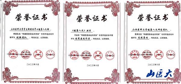我校在“构建医患命运共同体”专项评选活动中获奖三项,分别是我校新媒体中心健康人文部被评为“创新团队”,《健康人文》丛书被评为“优秀出版作品”,我校健康人文研究团队被评为“先进集体”。