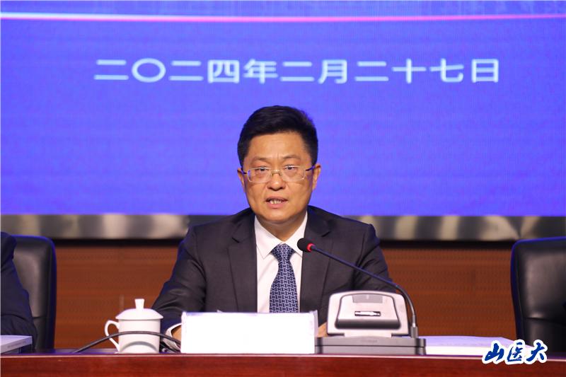 2月27日上午,我校2024年学科与科技高质量发展工作会议在中都校区教学办公楼学术报告厅召开。大会主题为“聚焦新突破,争创双一流,为全面建成全国一流研究应用型医科大学努力奋斗”。山西省委教育工委委员、省教育厅副厅长李金碧莅临会议,校党委书记王军、校长解军等校领导班子成员出席会议。大会由副校长张岩波主持。