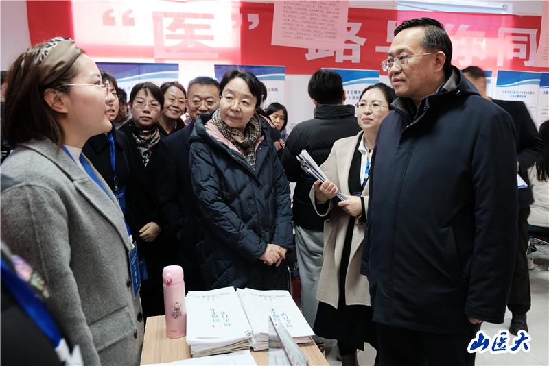3月8日上午,由吕梁市委常委、组织部长张欣宁带队,吕梁市委、人社局、卫健委、人才办、部分医院主要负责人一行专程对此次招聘活动进行了现场调研,校党委副书记彭月兰与其进行会谈,校毕业生就业指导中心等部门负责人参加了此次调研。