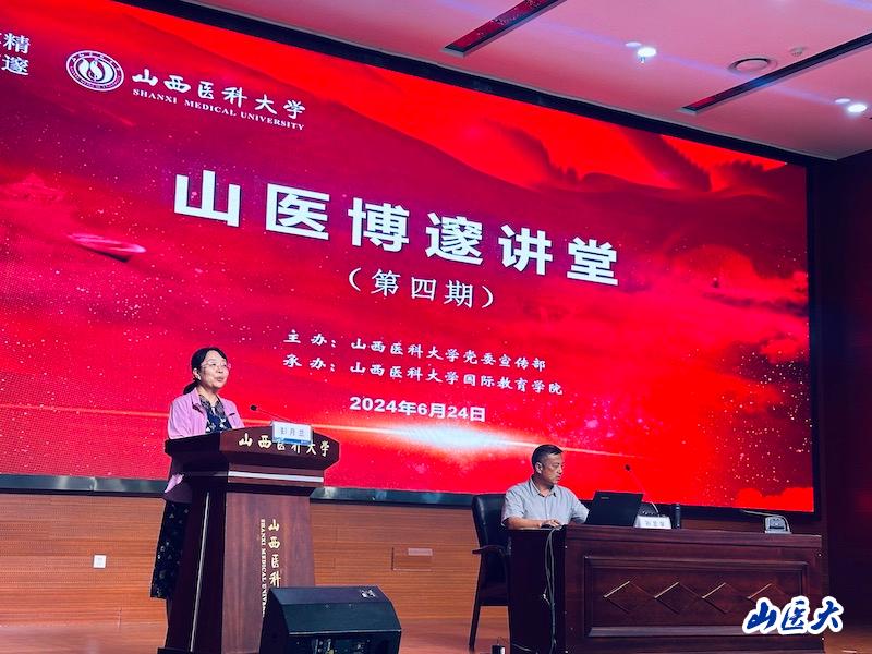 6月24日,由校党委宣传部主办、国际教育学院承办的“山医博邃讲堂”2024年第四期在中都校区教学办公楼一层报告厅举行。校党委副书记彭月兰主持,同济大学国际文化交流学院院长孙宜学教授受邀作专题讲座。学校各部门、院系负责人,国际教育学院、管理学院、马克思主义学院教师,思想政治辅导员,学生代表等现场聆听了讲座。