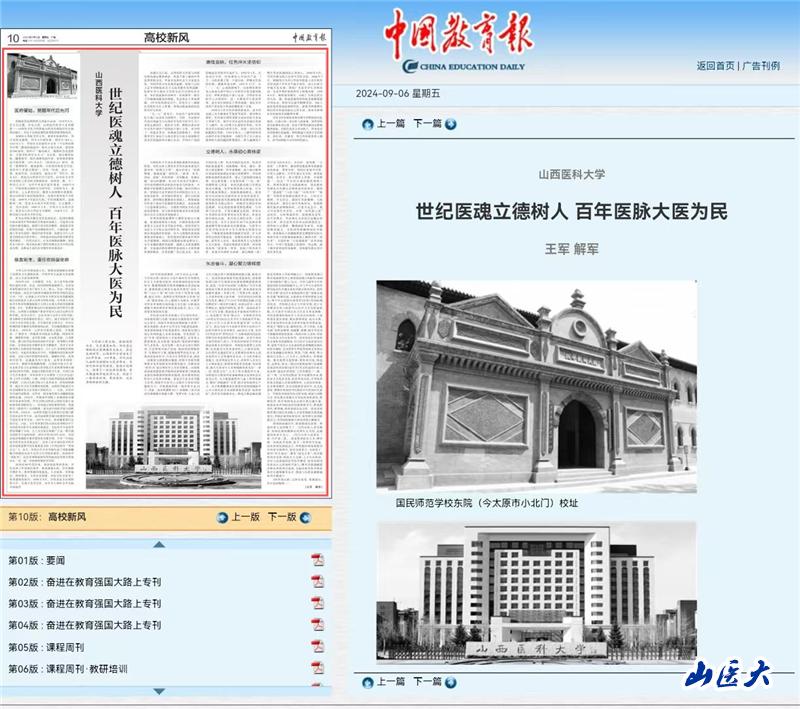 9月6日,《中国教育报》整版刊发我校党委书记王军、校长解军的署名文章《世纪医魂立德树人 百年医脉大医为民》。文章分“医府肇始,觉醒年代启先河”“焕发新生,重任在肩强使命”“赓续血脉,红色淬火坚信仰”“立德树人,永葆初心育栋梁”“矢志奋斗,凝心聚力铸辉煌”五个部分,全面回顾总结了国产亚洲精品美女久久久_99久无码中文字幕一本久道_亚洲成AV人影院_亚洲AV影院一区二区三区 狠狠躁夜夜躁人人爽天天不卡_国产激情久久久久影院老熟女_精品性高朝久久久久久久从建校到奋进新时代105年来的光辉历程,展现了在新时代新征程上学校坚持以习近平新时代中国特色社会主义思想为指导推进高质量发展的生动实践。