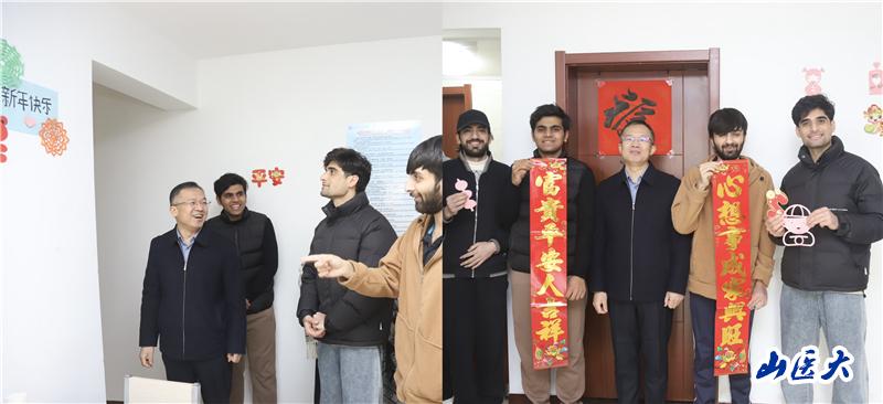 随后,焦向英向留学生发放春节礼包,并走访了学生宿舍,全面了解学生日常生活,关切询问学生们的生活学习情况和假期计划,留学生们分享了近一段时间在校学习和生活的感受,向大家展示了他们为了迎接春节所学剪纸技艺,焦向英嘱咐留学生要注意防火防灾、出行安全,共同维护校园的安全秩序。希望山医大家庭中的每个成员共同欢度幸福祥和的蛇年春节。