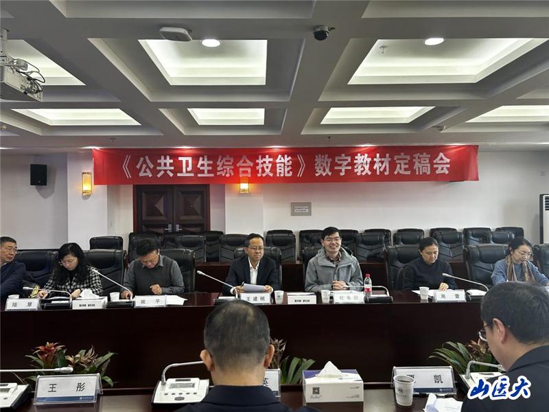 本次定稿会由我校教务部部长覃凯主持,教材主编王建明教授、人民卫生出版社数字教材编辑杜鱼田,我校党委常委、副校长焦向英、公共卫生学院院长王彤、院党委书记张志红等出席会议。来自全国各地的17位编写专家齐聚我校,共同推进《公共卫生综合技能》数字教材的高质量建设。