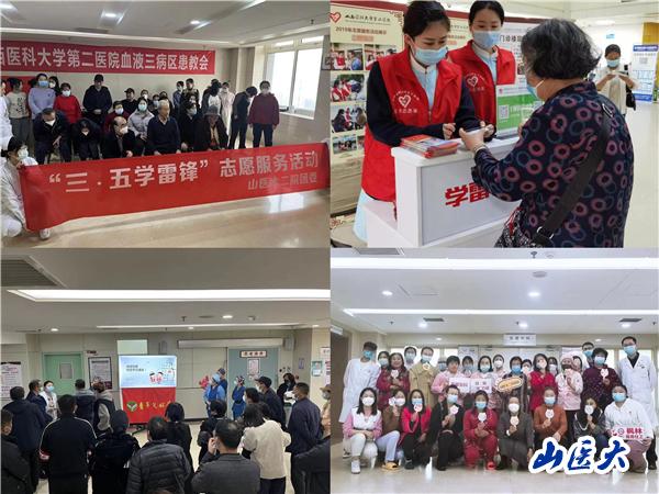 第二临床医学院团委针对春节过后,来院就诊患者骤然增多等情况,面向学校、社区广泛招募志愿者,开展了“院前——住院——出院”全程志愿服务, 在“院前”,开展“门诊导诊、就诊流程咨询、帮助困难患者办理就诊卡、取药等志愿服务;在住院期间,为患者开展协助就诊、政策解答、心理疏导等志愿服务;为特殊个案患者提供出院指导、出院随访等服务。此外,院团委还组织开展了“为了姐妹们的健康与幸福”“精准医疗服务进社区”等学雷锋主题系列活动,在医院、社区为患者免费进行义诊、健康宣教、早期筛查、诊断和治疗等服务。