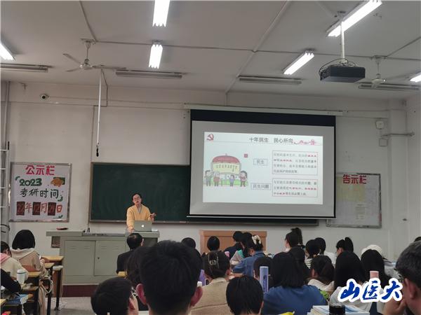为深入学习宣传贯彻党的二十大精神,4月12日下午,儿科医学系邀请思政课骨干教师宣讲团成员、马克思主义学院王虹老师作宣讲报告。辅导员刘斌主持,100余名本科生参加报告会。