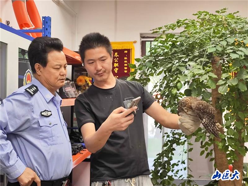 王佳城同学发现受伤鸟只后,迅速采取行动,用自己所学医学知识和满腔热情,对这只鸟进行了初步救助。并第一时间联系驻校民警,希望通过多方力量使得鸟只得到专业的救治。经晋中市野生动物保护站工作人员现场确认,这只鸟为大鹰鹃鸟属国家保护野生动物,随后将这只大鹰鹃鸟带回保护站进行进一步救治。