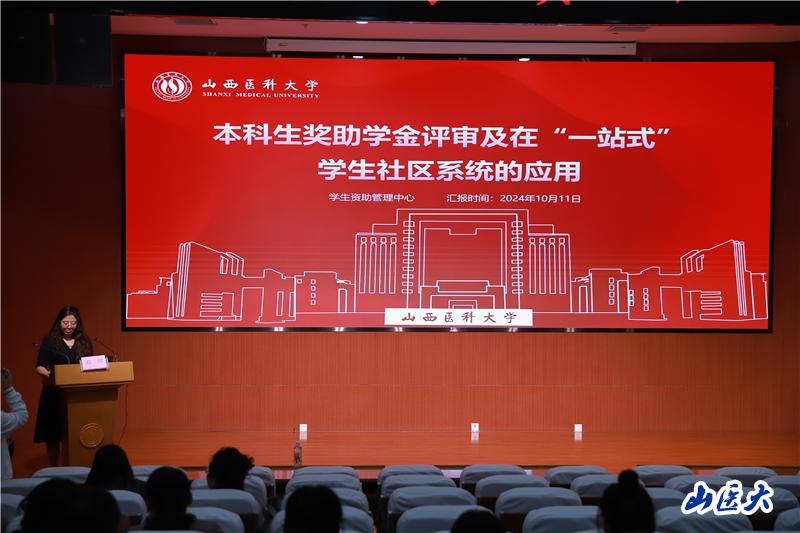 石璟详细解读了我校奖助学金资助政策体系,包括各类资助项目的申请条件、资助标准、评审程序、资金管理等;结合本年度已经结束的家庭经济困难认定工作、国家奖学金评审工作和即将开展的国家励志奖学金、本科生综合奖学金评审工作,介绍了学校资助工作的具体流程、重点难点、注意事项;通过实践操作、图文结合的方式,介绍了“一站式”学生社区线上服务平台的功能设置、模块分区和操作方法。
