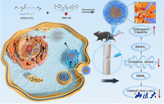 该研究通过将TMP195包裹在mPEG-PCL纳米胶束中来制备mPPTMP195纳米粒子,以探索其在骨折修复中的治疗潜力。结果证明了mPPTMP195具有安全的生物相容性,并且在骨折小鼠中具有显著疗效。此外,该研究发现mPPTMP195通过阻止HDAC4从细胞质转移到细胞核来激活NRF2/HO-1信号通路。这种激活促进了骨髓间充质干细胞向成骨细胞分化,抑制了破骨细胞分化,加速了骨折愈合过程。