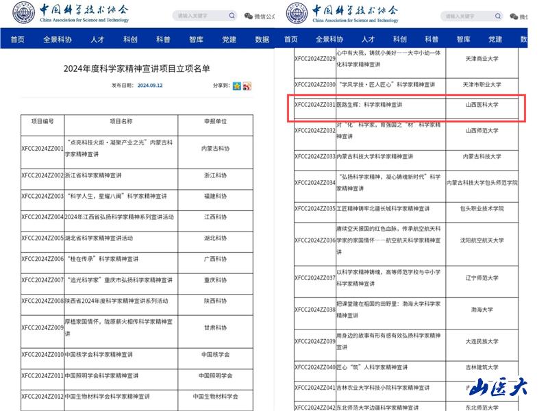 近日,中国科学技术协会2024年度科学家精神宣讲项目立项名单公布,我校“正学风 比勤奋”工作室申报的项目《医路生辉:科学家精神宣讲》获批立项。
