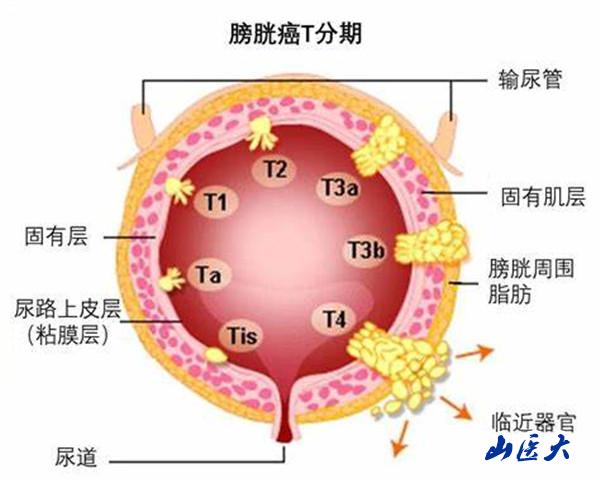 血尿为膀胱癌最常见的首发症状,85%的患者可出现反复发作的无痛性间歇性肉眼血尿,出血量可多可少,严重时带有血块,在膀胱癌发病的全过程100%或早或晚出现血尿。