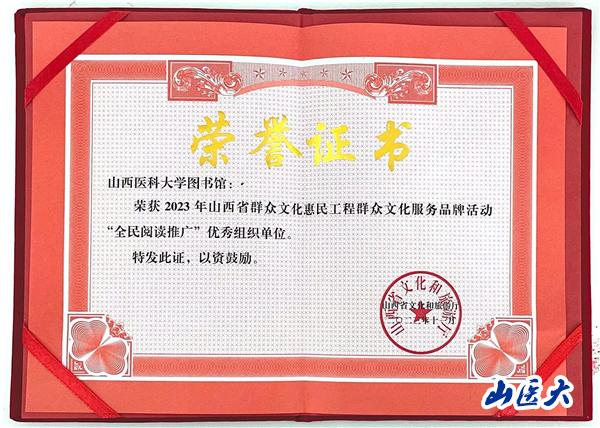 我校图书馆荣获2023年山西省群众文化惠民工程群众文化服务品牌活动“全民阅读推广”优秀组织单位等多项荣誉