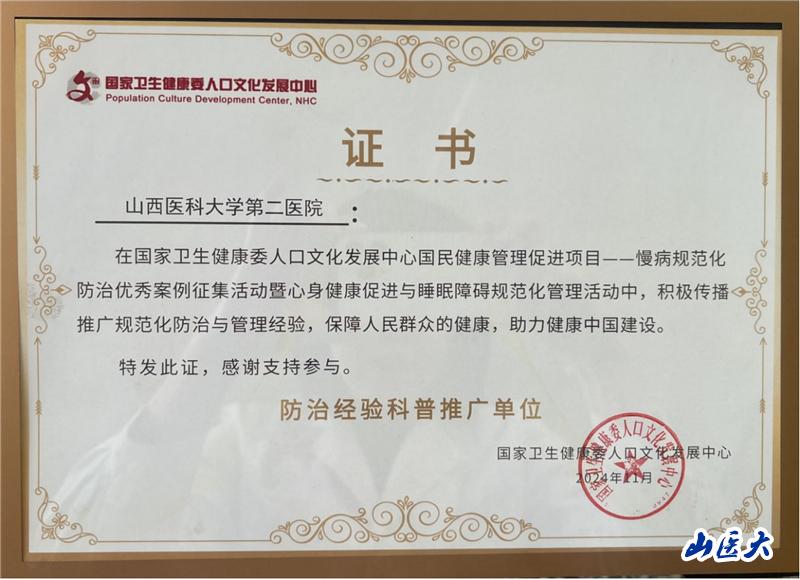我校第二医院荣获“心身健康促进与睡眠障碍规范化管理活动防治经验科普推广单位”称号-国产亚洲精品美女久久久_99久无码中文字幕一本久道_亚洲成AV人影院_亚洲AV影院一区二区三区 狠狠躁夜夜躁人人爽天天不卡_国产激情久久久久影院老熟女_精品性高朝久久久久久久