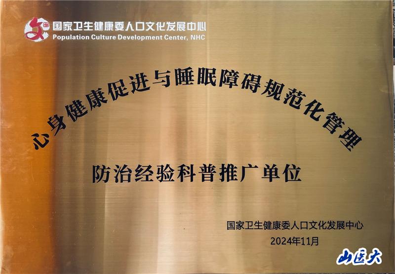 我校第二医院荣获“心身健康促进与睡眠障碍规范化管理活动防治经验科普推广单位”称号