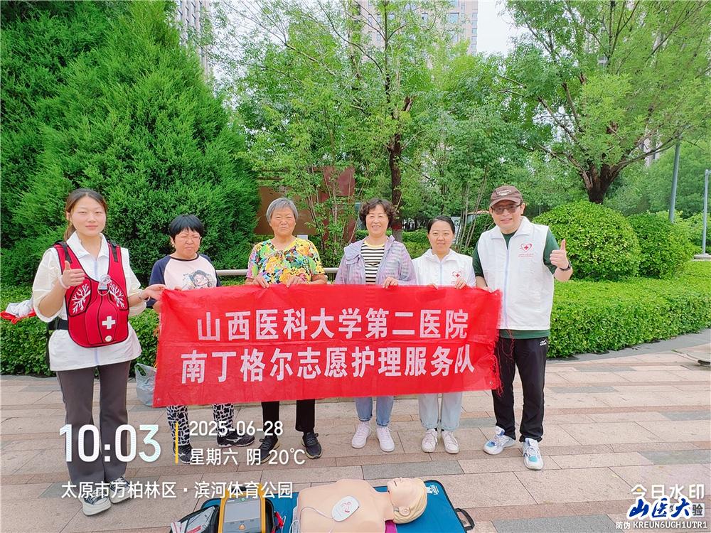 6月28日,我校第二医院南丁格尔志愿服务队急诊科志愿者走进滨河体育公园,为广大群众带来了一场生动实用的急救技能宣讲活动,将专业的急救知识送到群众身边,助力提升公众自救互救能力。