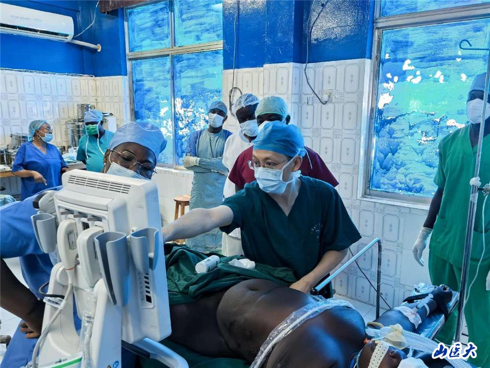 三位专家中,张林忠带领的我校第二医院麻醉科在临床麻醉、无痛诊疗及急危重患者抢救方面拥有丰富经验。在非期间,他参与并指导当地麻醉医师开展麻醉超声可视化引导技术、可视喉镜技术和麻醉机的使用,并与当地麻醉医师沟通交流,对麻醉医师队伍的建设及围术期麻醉管理提出合理化建议。他实地指导当地麻醉医师开展超声引导股神经阻滞、腹横筋膜平面阻滞麻醉;推广可视喉镜插管技术,提高全麻气管插管的准确性和成功率;对于感染中毒性休克患者进行围术期抢救,指导当地麻醉医师采用超声引导颈内静脉穿刺置管进行容量复苏治疗,及时保障了患者的围术期生命安全。