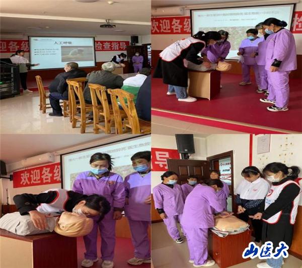 我校第二医院在学习贯彻习近平新时代中国特色社会主义思想主题教育中积极回应基层群众期盼,充分发挥医疗卫生资源优势,紧密结合“我为群众办实事”,全力推动主题教育走深走实。4月15日上午,第二医院全科医学科党支部一行16名医护人员在忻州市定襄县仁爱医疗养老院开展义诊活动,为当地居民及患者提供健康咨询、体检筛查、心肺复苏培训、常见病、多发病诊疗等服务。义诊专家团队由擅长成人及儿童风湿疾病诊治的全科医学科主任茹晋丽、擅长心脑血管疾病诊治的主任医师张秀平、擅长呼吸疾病诊治的主任医师邢爱萍、科室优秀的医学硕士及护士长韩丽琴带领的护士团队组成。