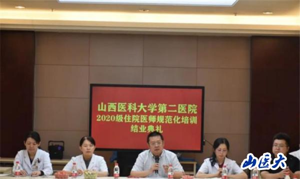 近日,我校第二医院毕教办召开2020级住培学员结业典礼,副院长原大江、2020级全体住培学员、毕业后继续教育办公室全体工作人员、基地主任代表、教学主任代表、带教老师代表。毕教办赵星涛主持此次毕业座谈会。